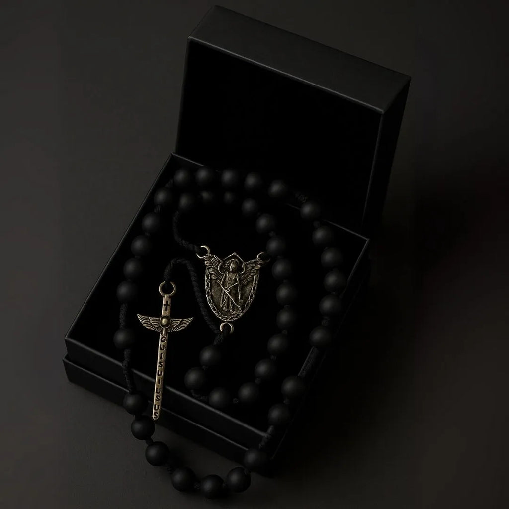 Terço São Miguel Arcanjo com Espada - Preto Fosco | Dom Conrado