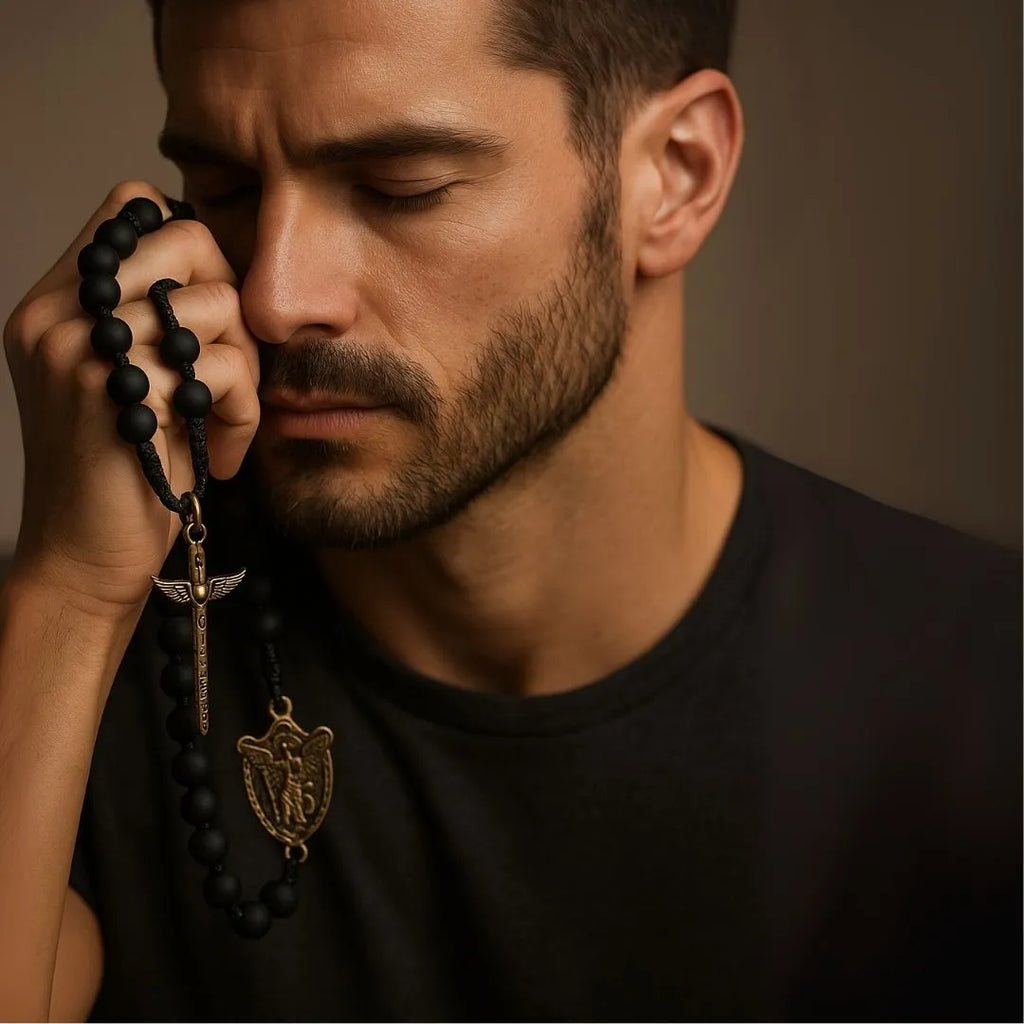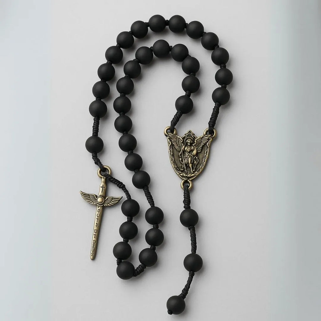 Terço de São Miguel Arcanjo com Contas Pretas Foscas é muito mais do que um simples terço. Ele representa devoção, força espiritual e proteção contra as batalhas do dia a dia. Com design robusto e elegante, é o acessório ideal para manter sua fé presente em qualquer momento.