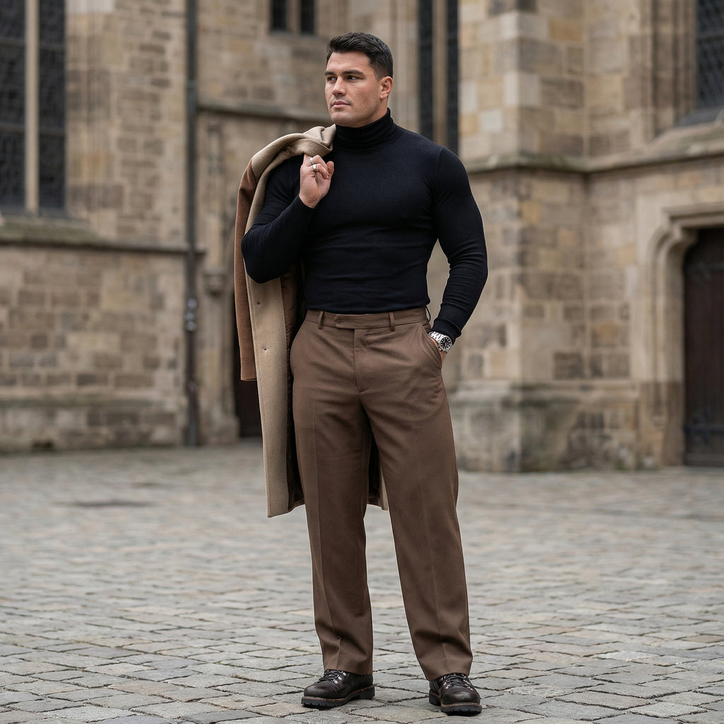 - Gola Alta Estruturada: Protege o pescoço do vento e adiciona um nível instantâneo de elegância ao visual.