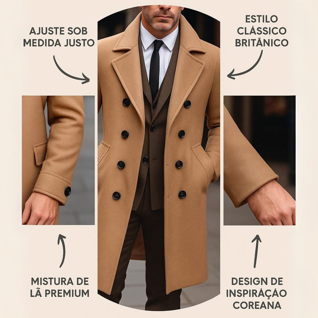 Casaco Sobretudo Masculino Marrom Lã Batida Cavil - Estilo Britânico. Elegância Atemporal