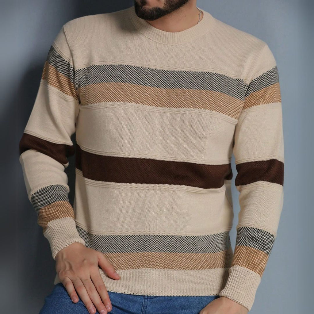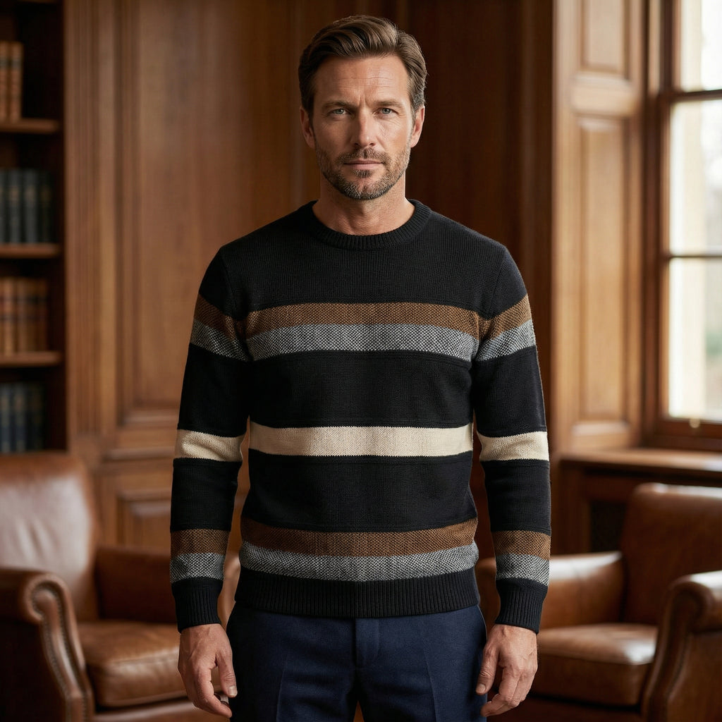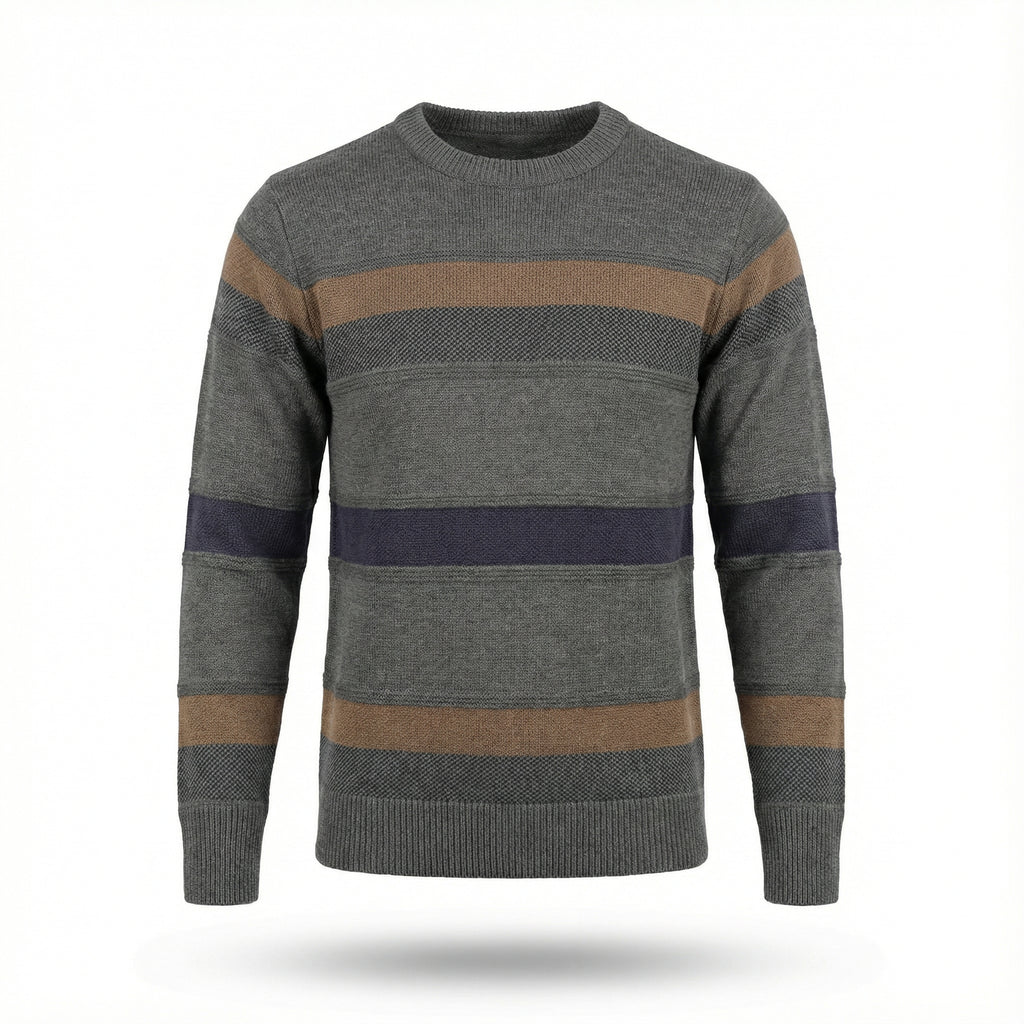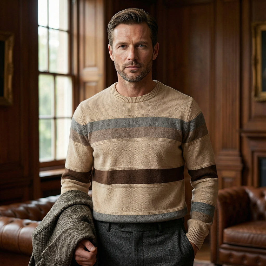 - Estilo Clássico: Gola redonda e padronagem em listras largas que combinam facilmente com jeans ou calças de sarja.