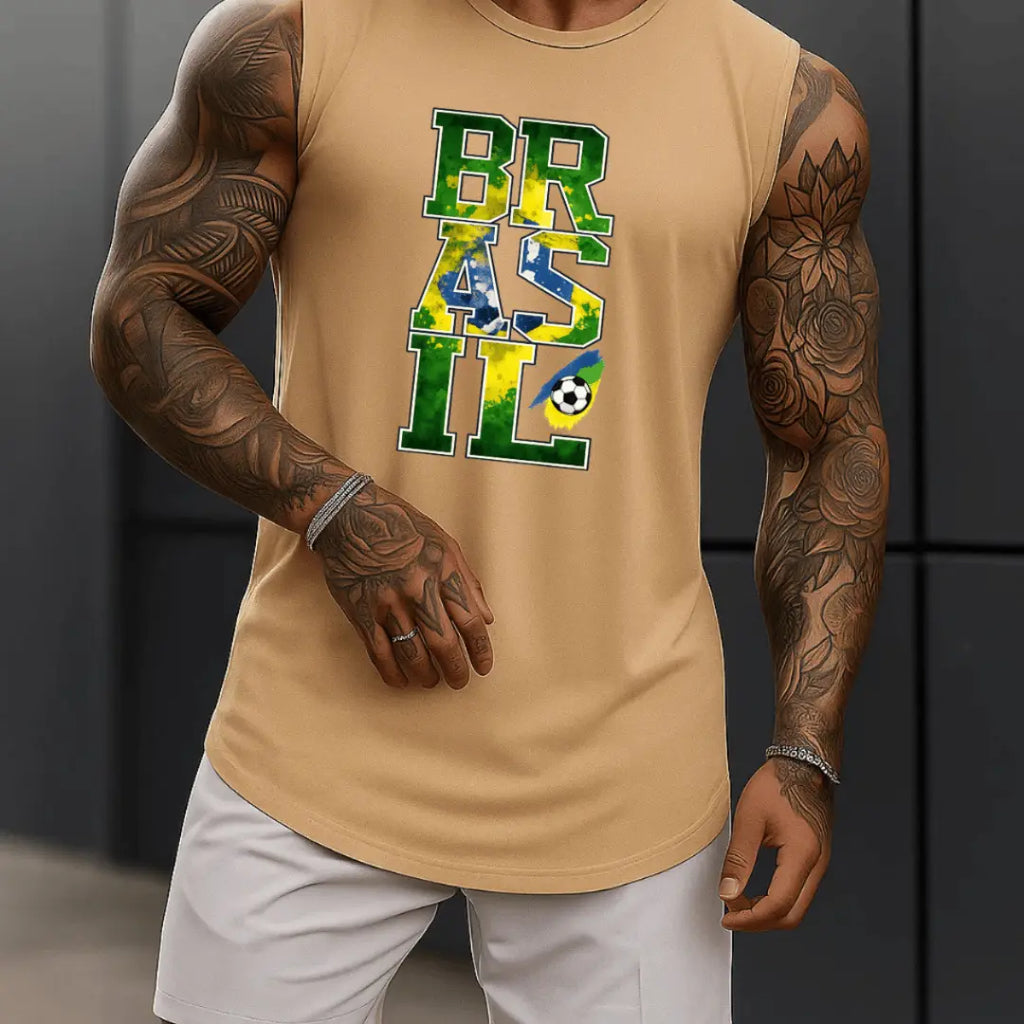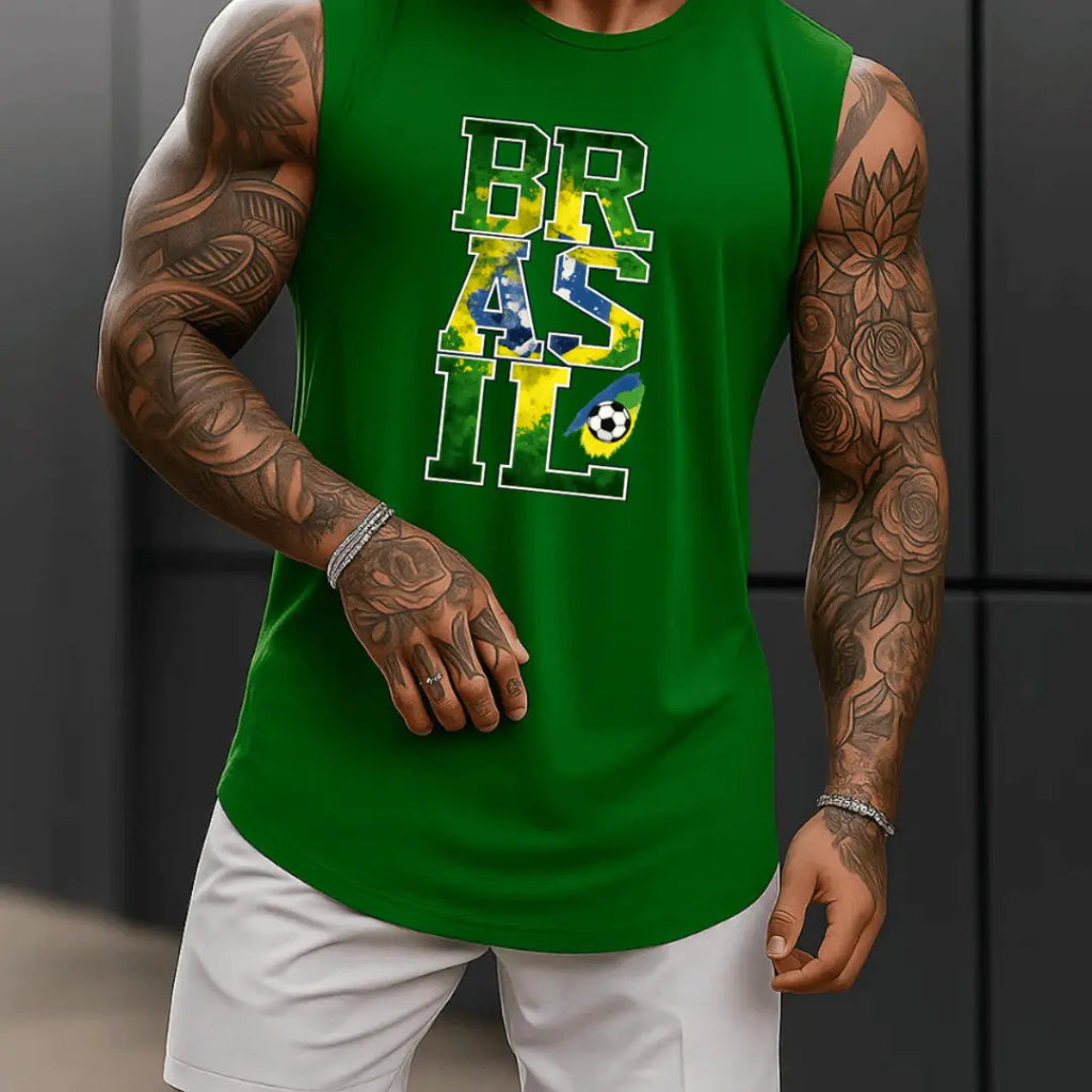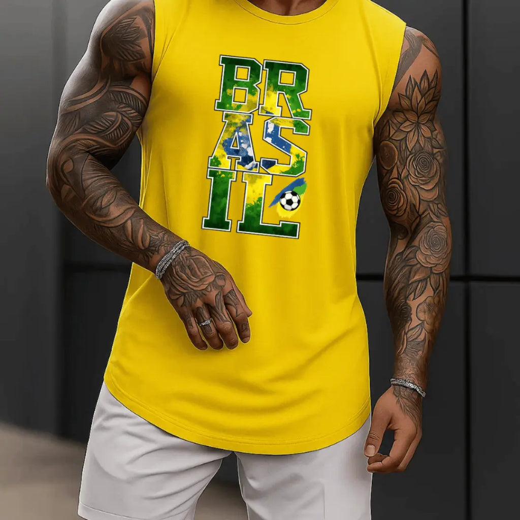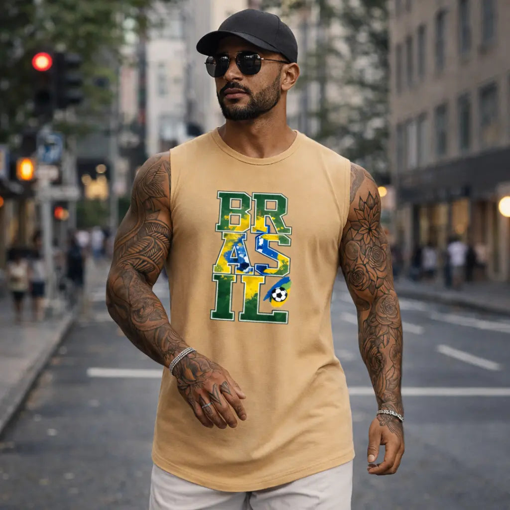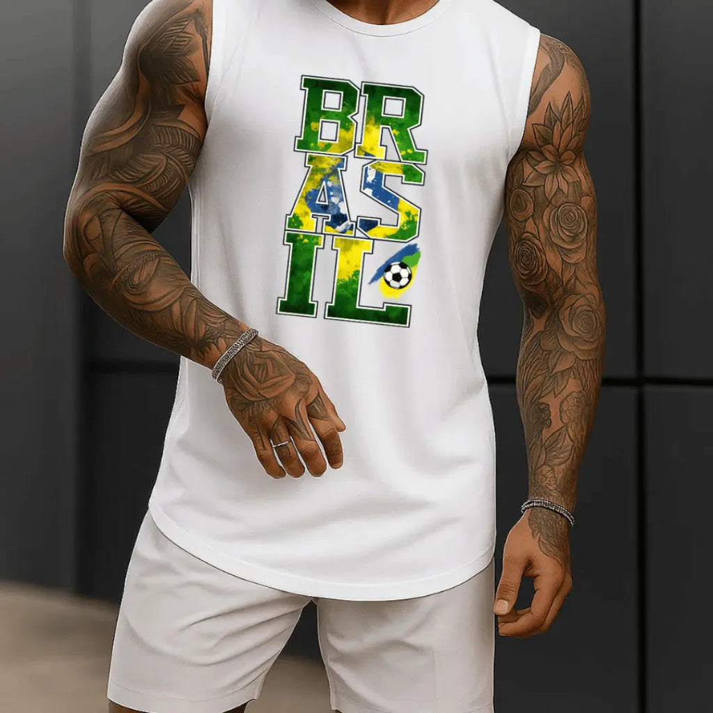 Regata Masculina Algodão - Brasil é a escolha perfeita para quem busca o equilíbrio entre conforto, estilo e durabilidade. Confeccionada com 100% algodão de alta qualidade, essa regata foi feita para se destacar no seu treino, no dia a dia ou no look casual.
