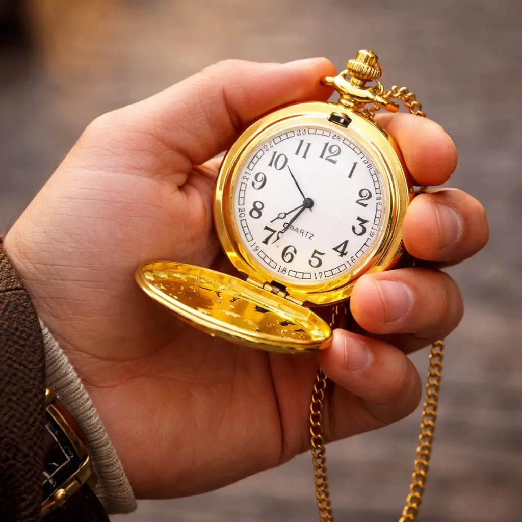 Ideal para colecionadores ou como um presente marcante, esse modelo de relógio de bolso é uma verdadeira relíquia retrô, trazendo um visual atemporal e uma história que você pode carregar consigo. Sua corrente de bolso com clip e o entalhe detalhado da bússola no visor transformam esse item em um verdadeiro clássico, elevando seu estilo de maneira única e personalizada.