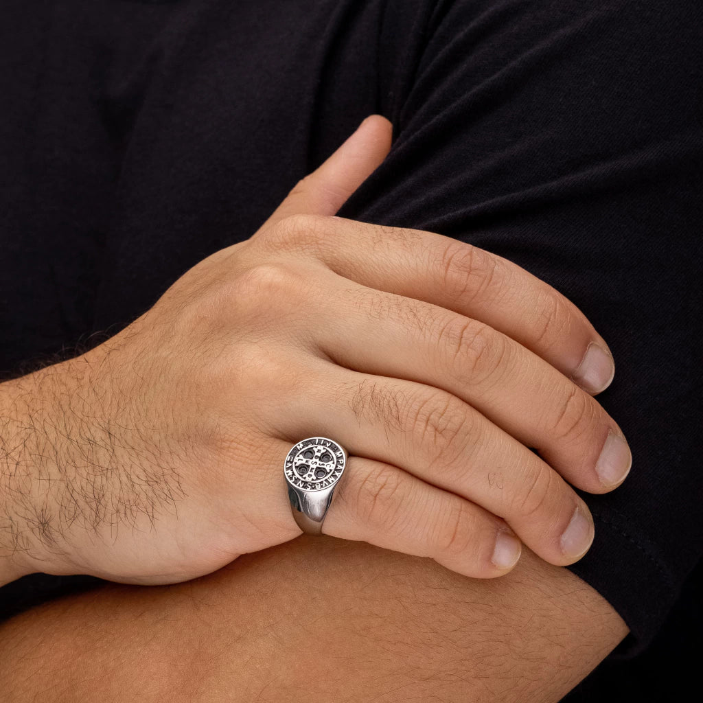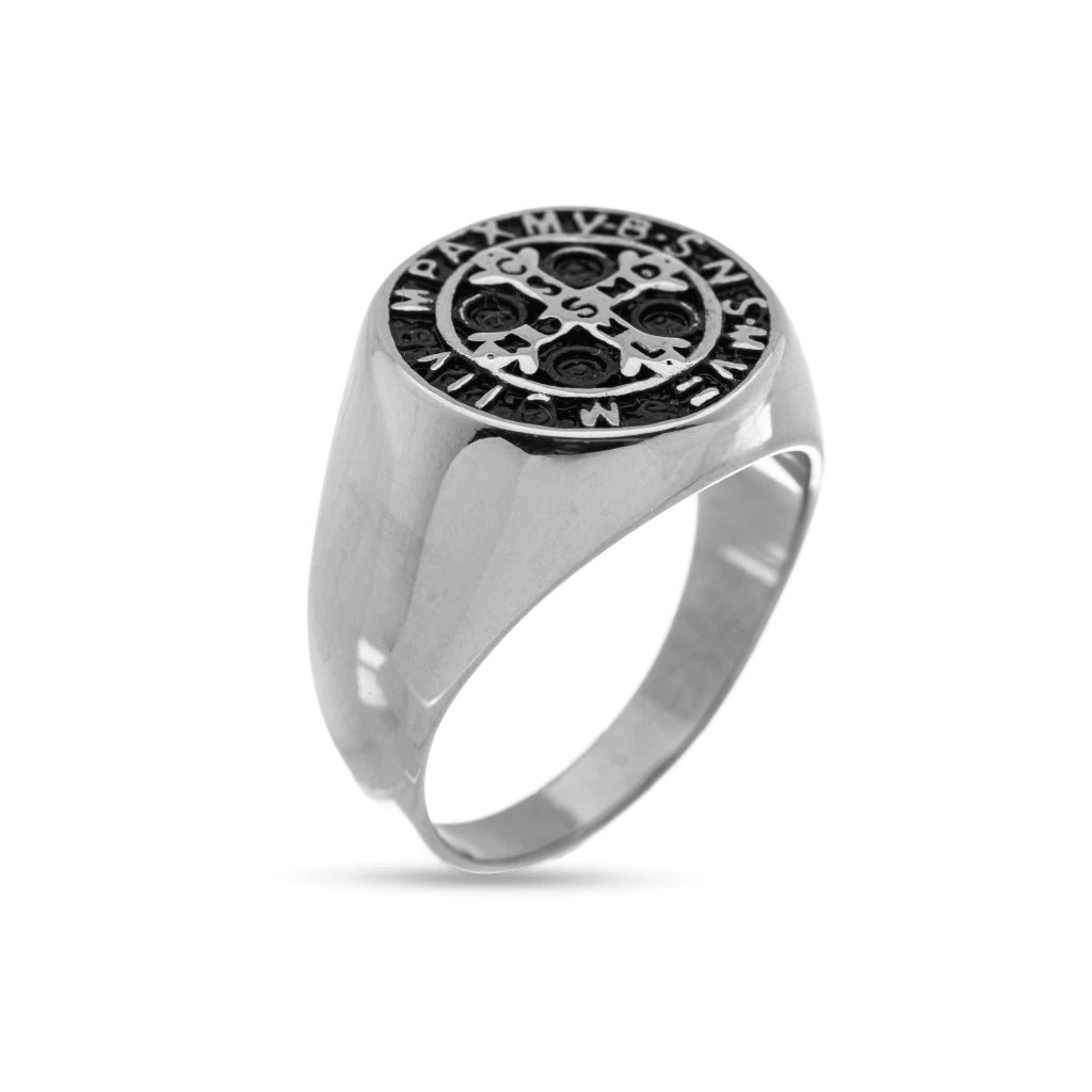 Anel São Bento em Aço Inoxidável 316L – Proteção e Estilo com Fé | Dom Conrado